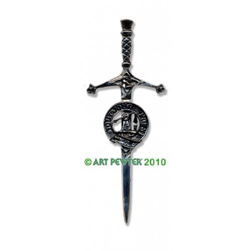 The Carmichael Clan Crest Kilt Pin adds just a touch more Scottish pride to your kilt. 3.75" in length, Made in Scotland.