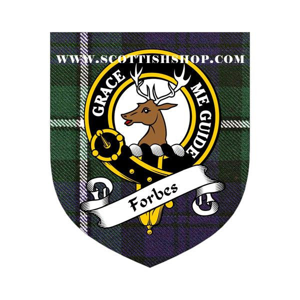 A 6oz whisky glass featuring the Forbes Clan Crest and Tartan around the rim. Made in Scotland.