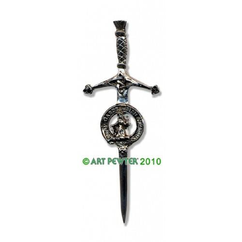 The Montgomery Clan Crest Kilt Pin adds just a touch more Scottish pride to your kilt. 3.75" in length, Made in Scotland.