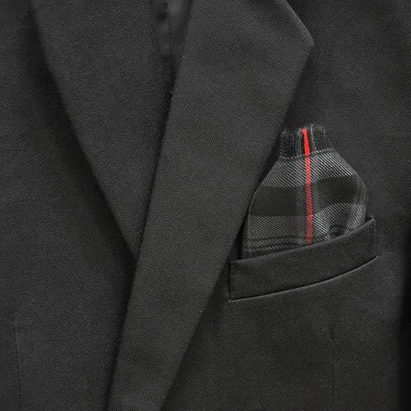 Our lightweight and versatile Witches' Blood Tartan pocket square is a great way to add a touch of tartan to your wardrobe. 100% worsted wool & approximately 9” by 9”. Made in Scotland.
