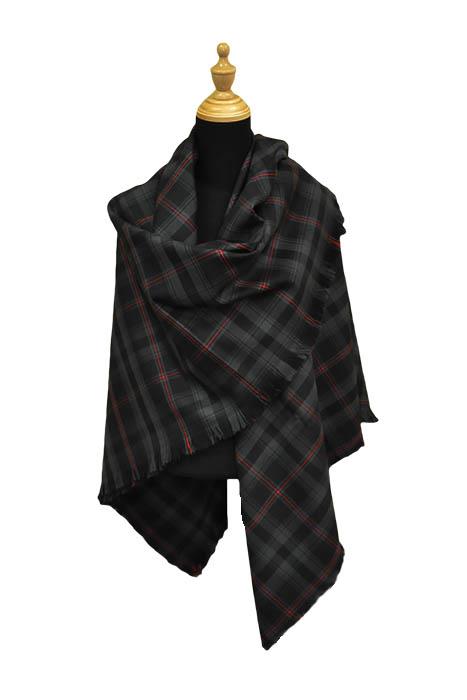 Our Witches' Blood tartan 100% wool shawl is approximately 58” x 58”. Made in Scotland.